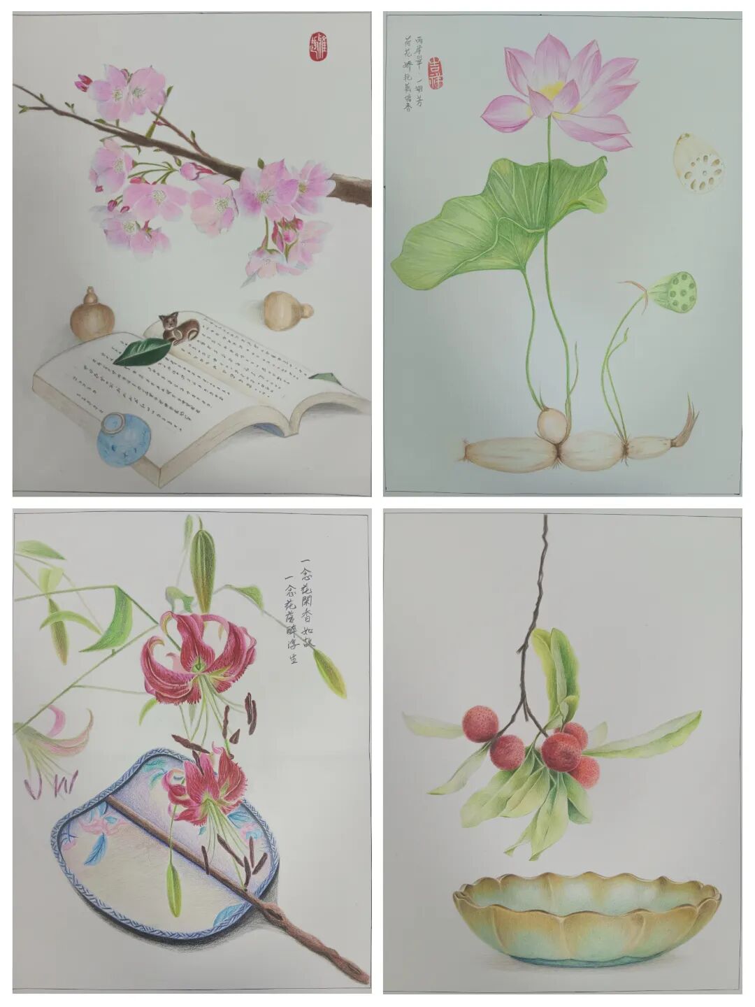 一张白纸,一把彩铅,一个阳光正好的上午,在老师的耐心指导下,在同学间的相互鼓励中,彩铅班学员徜徉于艺术的海洋中,以妙笔巧思勾画出一张张精美的彩铅作品。