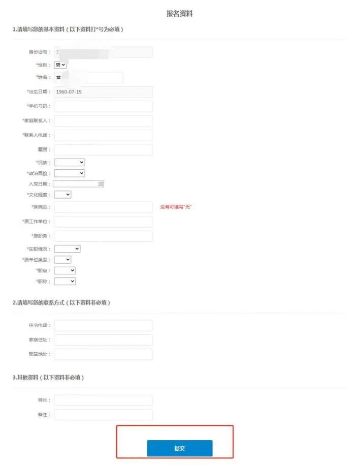 填写学员资料,*为必填项目,必须填写学员的真实信息,填写完毕后点击“提交”按钮。