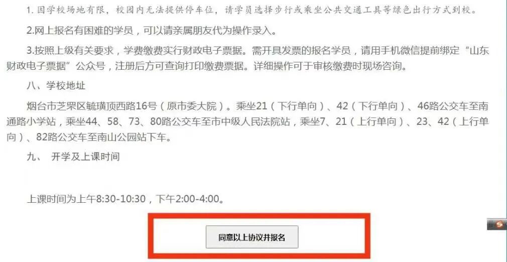 仔细查看报名协议,并点击“同意以上协议并报名”。