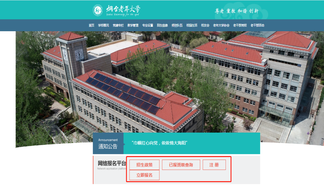 进入烟台老年大学官方网站:http://www.ytlndx.com,点击“立即报名”按钮。
