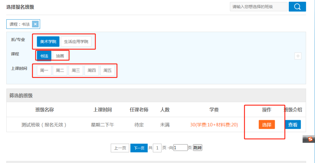 第一种方法:根据学院/课程/上课时间等条件进行筛选班级。
